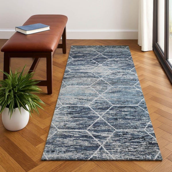 Mayfield Premium Machine Washable Abstract AMF1724 Blue 2 ft. 3 in. x 7 ft. 6 in. Runner Rug