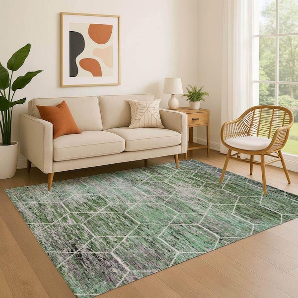 Mayfield Premium Machine Washable Abstract AMF1724 Green 5 ft. x 7 ft. 6 in. Area Rug