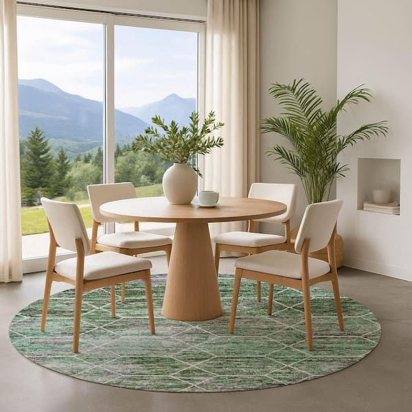Mayfield Premium Machine Washable Abstract AMF1724 Green 8 ft. x 8 ft. Round Rug