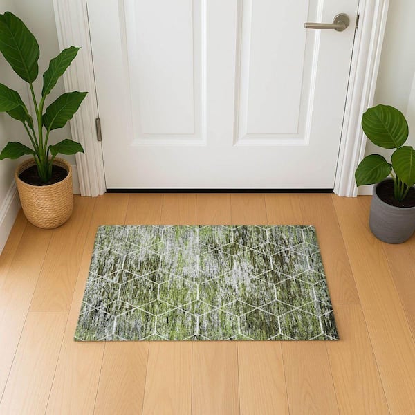 Mayfield Premium Machine Washable Abstract AMF1724 Olive 2 ft. x 3 ft. Area Rug