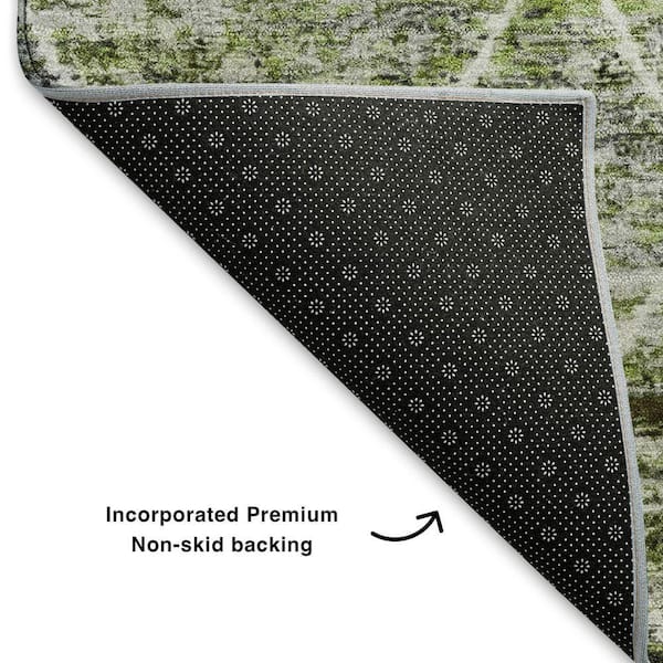 Mayfield Premium Machine Washable Abstract AMF1724 Olive 8 ft. x 8 ft. Round Rug