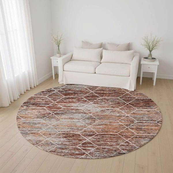 Mayfield Premium Machine Washable Abstract AMF1724 Paprika 8 ft. x 8 ft. Round Rug
