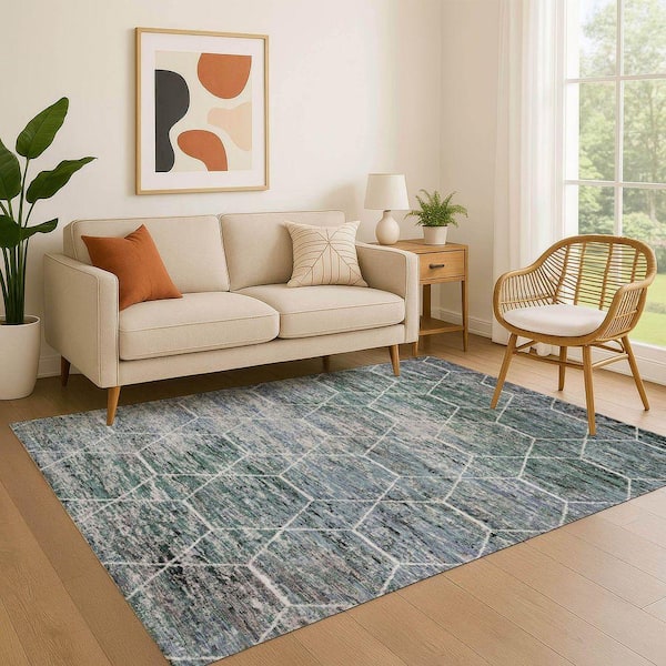 Mayfield Premium Machine Washable Abstract AMF1724 Teal 10 ft. x 14 ft. Area Rug