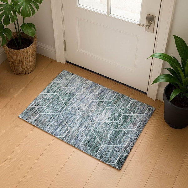 Mayfield Premium Machine Washable Abstract AMF1724 Teal 2 ft. x 3 ft. Area Rug