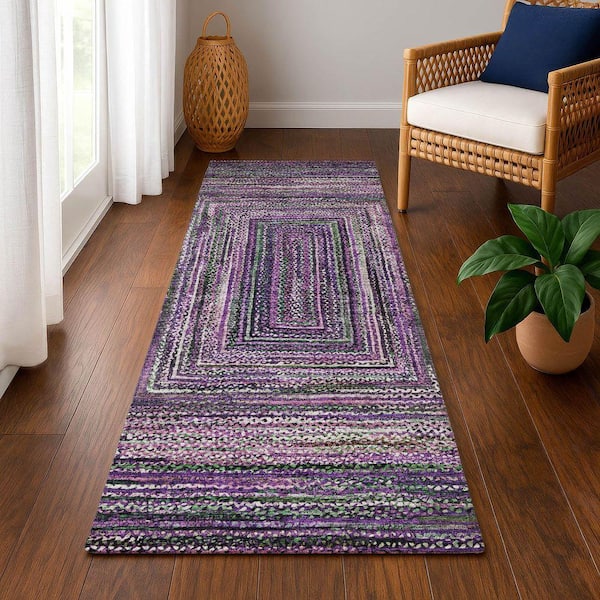 Mayfield Premium Machine Washable Abstract AMF1725 Purple 2 ft. 3 in. x 7 ft. 6 in. Runner Rug