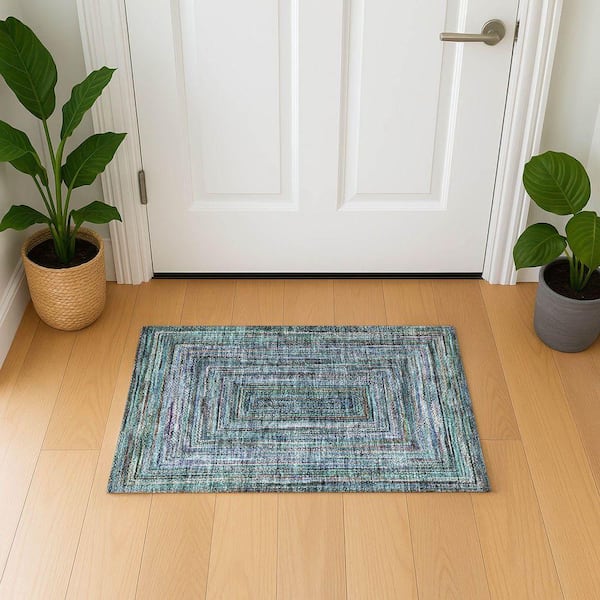 Mayfield Premium Machine Washable Abstract AMF1725 Teal 2 ft. x 3 ft. Area Rug