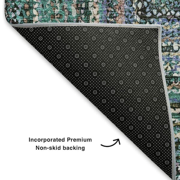 Mayfield Premium Machine Washable Abstract AMF1725 Teal 8 ft. x 8 ft. Round Rug