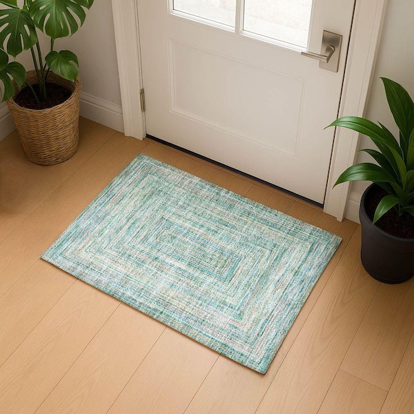 Mayfield Premium Machine Washable Abstract AMF1726 Teal 2 ft. x 3 ft. Area Rug