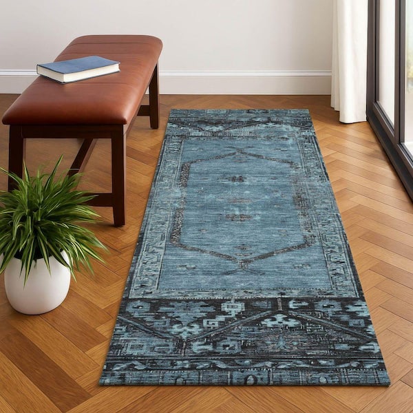 Mayfield Premium Machine Washable Abstract AMF1727 Blue 2 ft. 3 in. x 7 ft. 6 in. Runner Rug