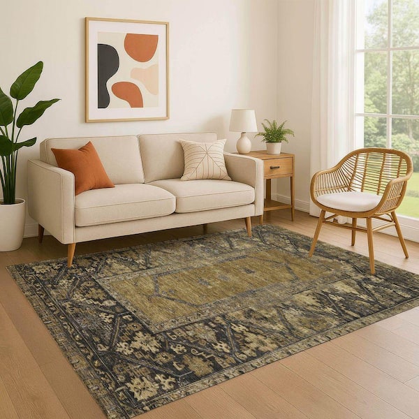 Mayfield Premium Machine Washable Abstract AMF1727 Brown 3 ft. x 4 ft. Area Rug