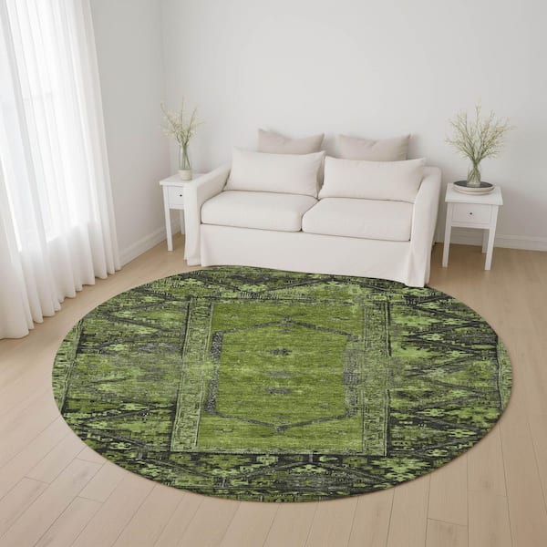 Mayfield Premium Machine Washable Abstract AMF1727 Olive 8 ft. x 8 ft. Round Rug