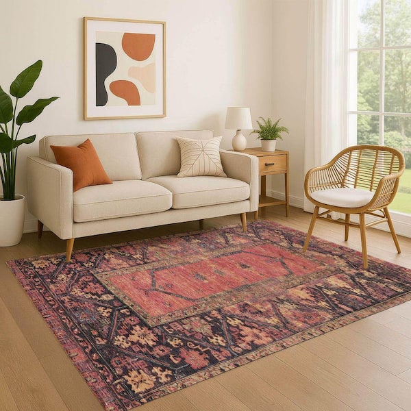 Mayfield Premium Machine Washable Abstract AMF1727 Salmon 8 ft. x 10 ft. Area Rug