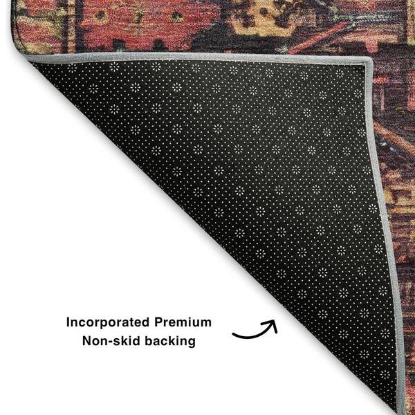 Mayfield Premium Machine Washable Abstract AMF1727 Salmon 8 ft. x 8 ft. Round Rug