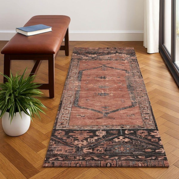 Mayfield Premium Machine Washable Abstract AMF1727 Terracotta 2 ft. 3 in. x 7 ft. 6 in. Runner Rug