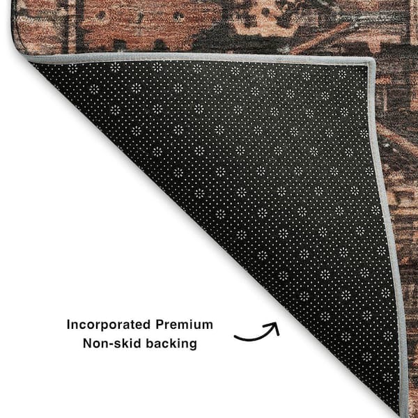 Mayfield Premium Machine Washable Abstract AMF1727 Terracotta 8 ft. x 8 ft. Round Rug