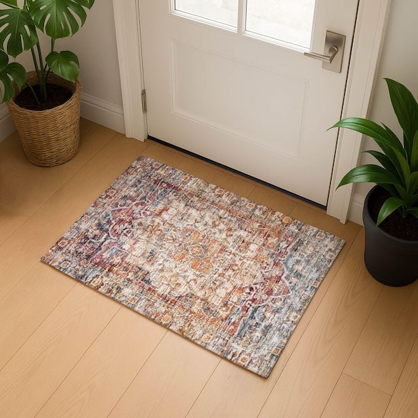 Mayfield Premium Machine Washable Abstract AMF1728 Copper 2 ft. x 3 ft. Area Rug