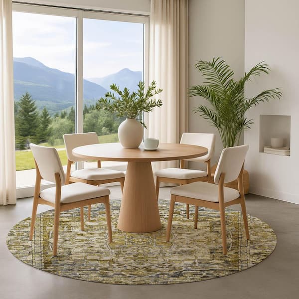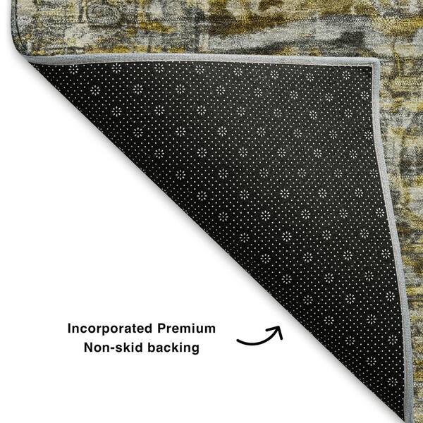 Mayfield Premium Machine Washable Abstract AMF1728 Pewter 8 ft. x 8 ft. Round Rug