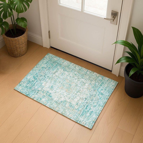 Mayfield Premium Machine Washable Abstract AMF1728 Teal 2 ft. x 3 ft. Area Rug