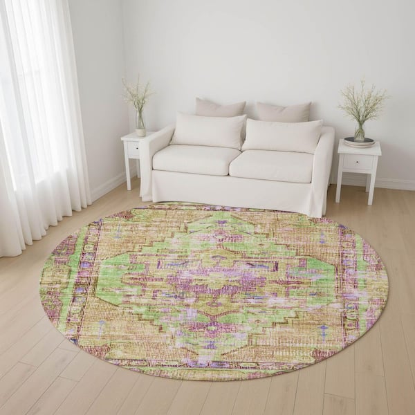 Mayfield Premium Machine Washable Abstract AMF1730 Lime 8 ft. x 8 ft. Round Rug