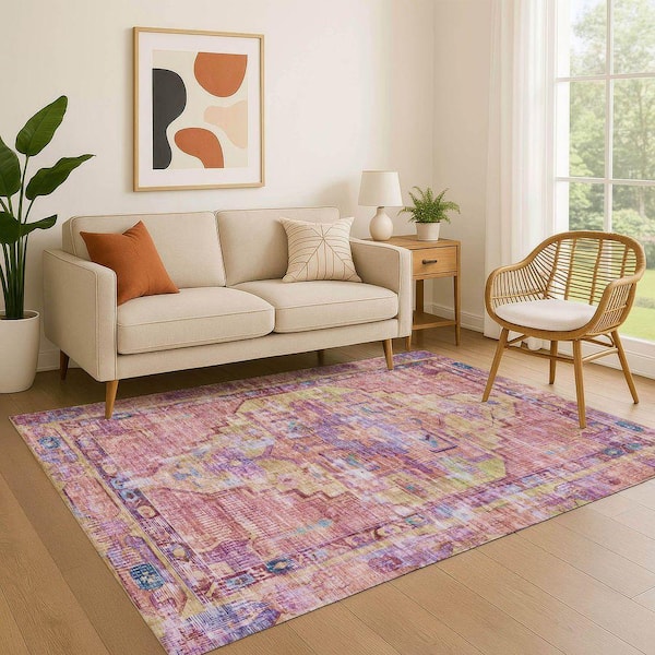 Mayfield Premium Machine Washable Abstract AMF1730 Pink 3 ft. x 4 ft. Area Rug