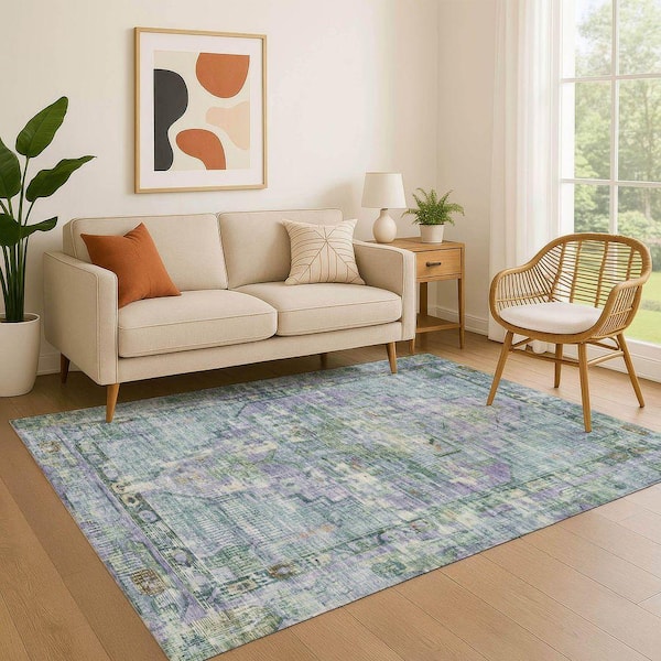 Mayfield Premium Machine Washable Abstract AMF1730 Teal 3 ft. x 4 ft. Area Rug