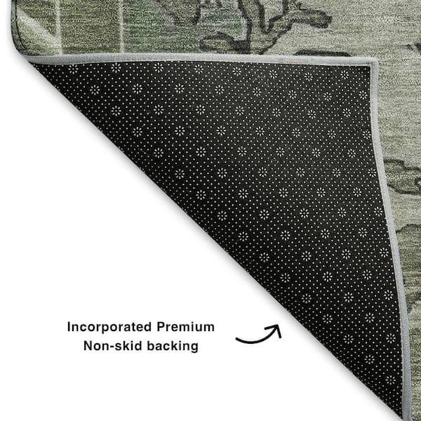 Mayfield Premium Machine Washable Abstract AMF1731 Aloe 8 ft. x 8 ft. Round Rug