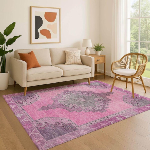 Mayfield Premium Machine Washable Abstract AMF1731 Pink 5 ft. x 7 ft. 6 in. Area Rug