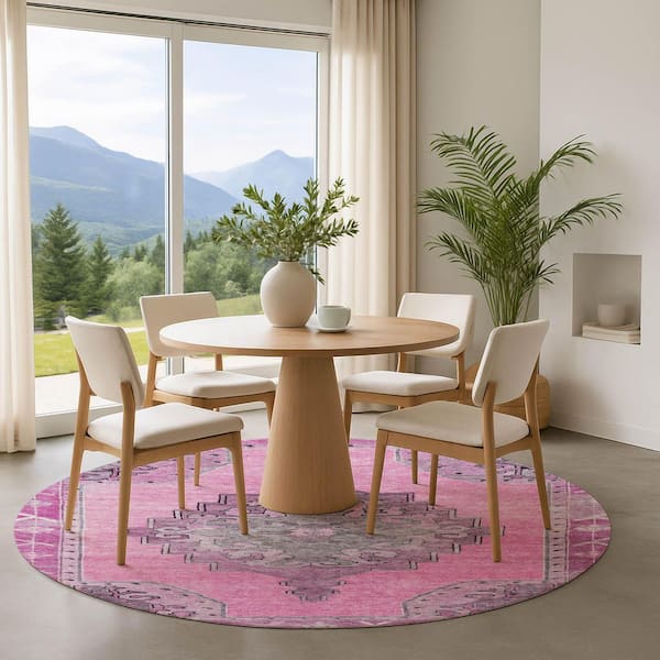 Mayfield Premium Machine Washable Abstract AMF1731 Pink 8 ft. x 8 ft. Round Rug