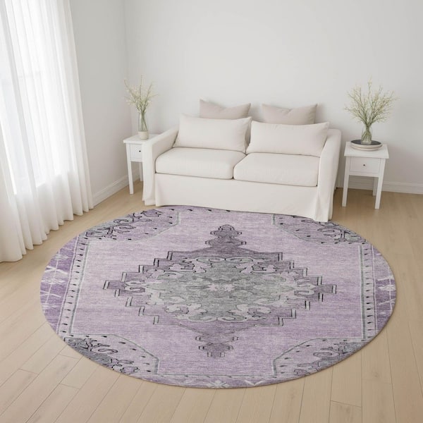 Mayfield Premium Machine Washable Abstract AMF1731 Plum 8 ft. x 8 ft. Round Rug