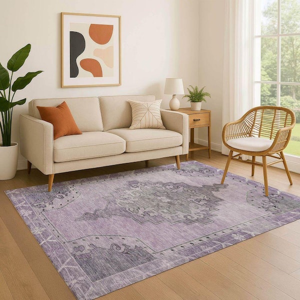 Mayfield Premium Machine Washable Abstract AMF1731 Plum 9 ft. x 12 ft. Area Rug