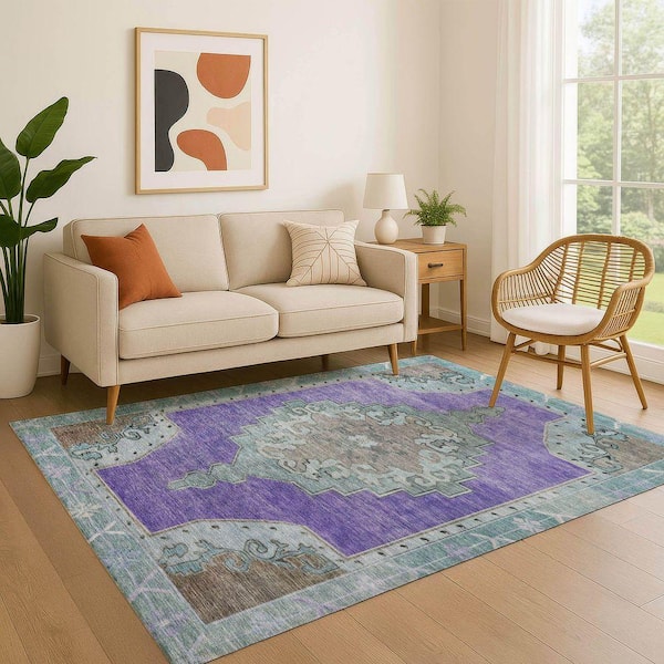 Mayfield Premium Machine Washable Abstract AMF1731 Purple 3 ft. x 5 ft. Area Rug