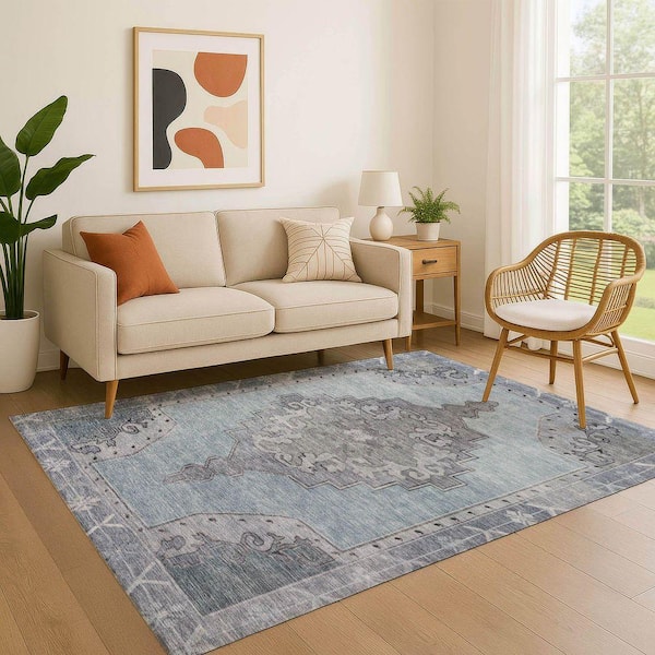 Mayfield Premium Machine Washable Abstract AMF1731 Sky 10 ft. x 14 ft. Area Rug