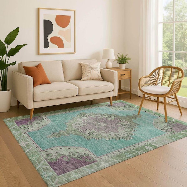 Mayfield Premium Machine Washable Abstract AMF1731 Teal 8 ft. x 10 ft. Area Rug