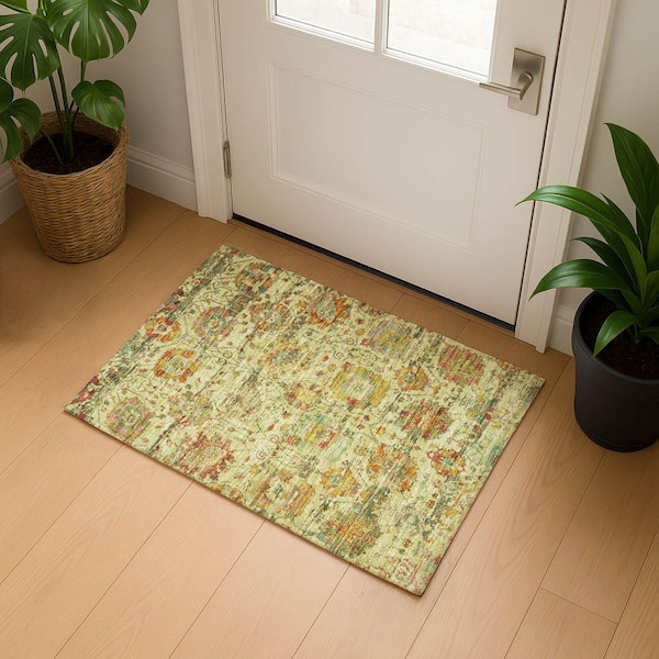 Mayfield Premium Machine Washable Abstract AMF1732 Gold 2 ft. x 3 ft. Area Rug