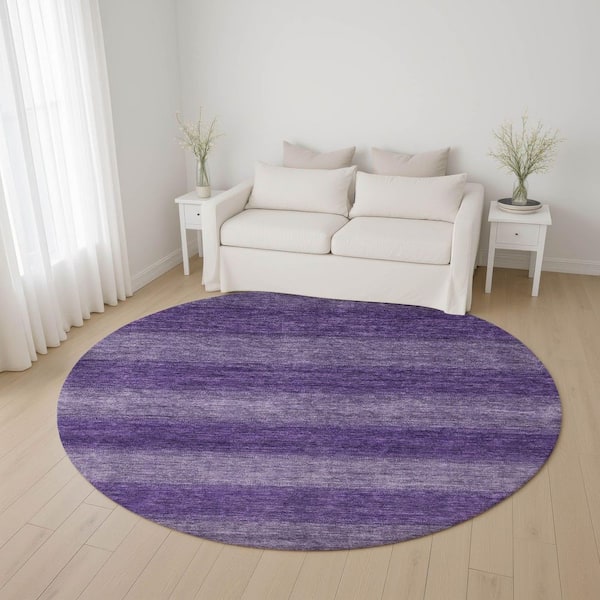 Mayfield Premium Machine Washable Abstract AMF1733 Purple 8 ft. x 8 ft. Round Rug