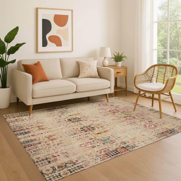 Mayfield Premium Machine Washable Abstract AMF1734 Beige 9 ft. x 12 ft. Area Rug