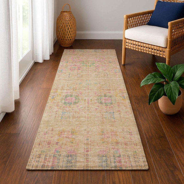 Mayfield Premium Machine Washable Abstract AMF1734 Tan 2 ft. 3 in. x 7 ft. 6 in. Runner Rug