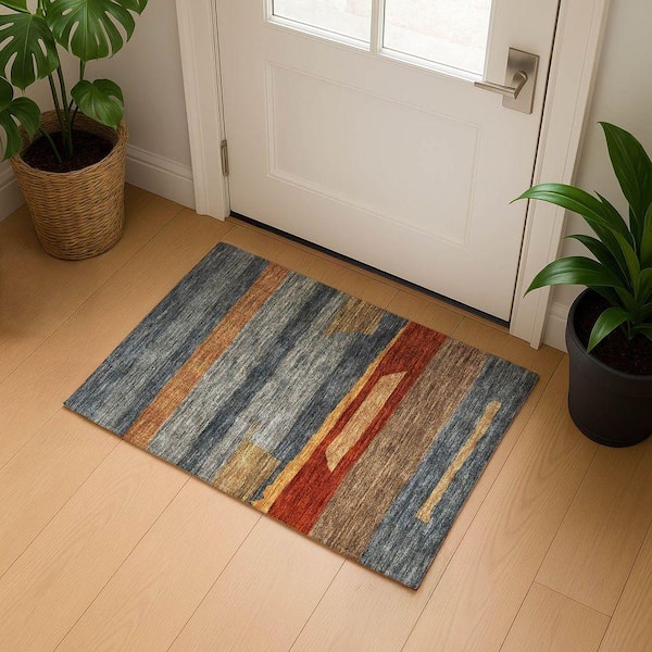 Mayfield Premium Machine Washable Abstract AMF1736 Blue 2 ft. x 3 ft. Area Rug