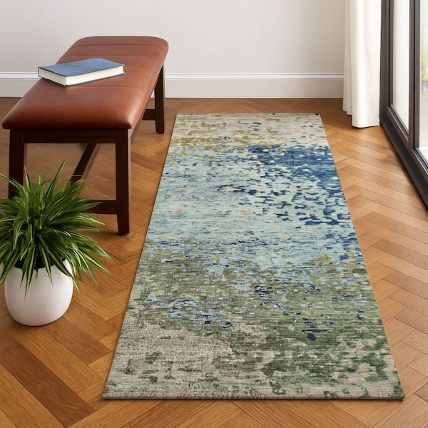 Mayfield Premium Machine Washable Abstract AMF1737 Blue 2 ft. 3 in. x 7 ft. 6 in. Runner Rug
