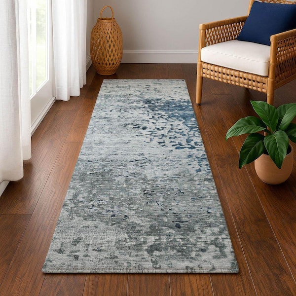 Mayfield Premium Machine Washable Abstract AMF1737 Denim 2 ft. 3 in. x 7 ft. 6 in. Runner Rug