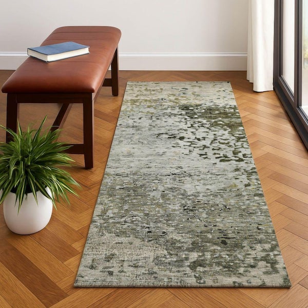 Mayfield Premium Machine Washable Abstract AMF1737 Graphite 2 ft. 3 in. x 7 ft. 6 in. Runner Rug
