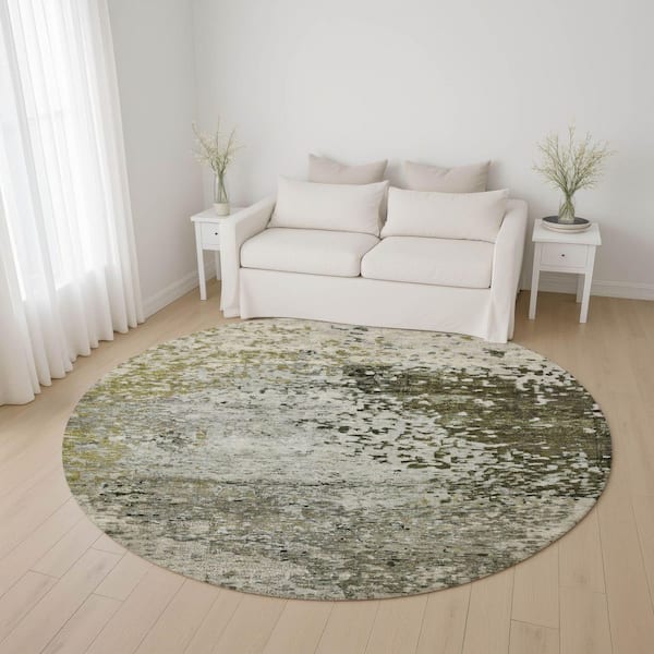 Mayfield Premium Machine Washable Abstract AMF1737 Graphite 8 ft. x 8 ft. Round Rug