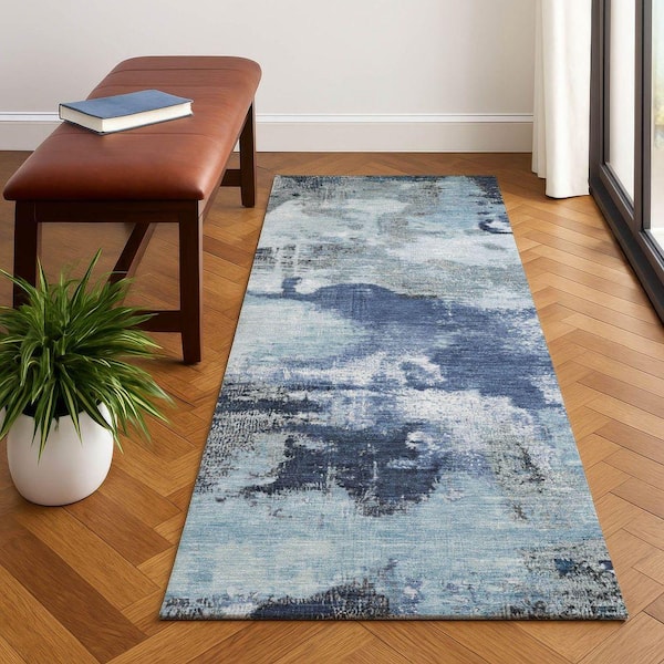 Mayfield Premium Machine Washable Abstract AMF1738 Blue 2 ft. 3 in. x 7 ft. 6 in. Runner Rug