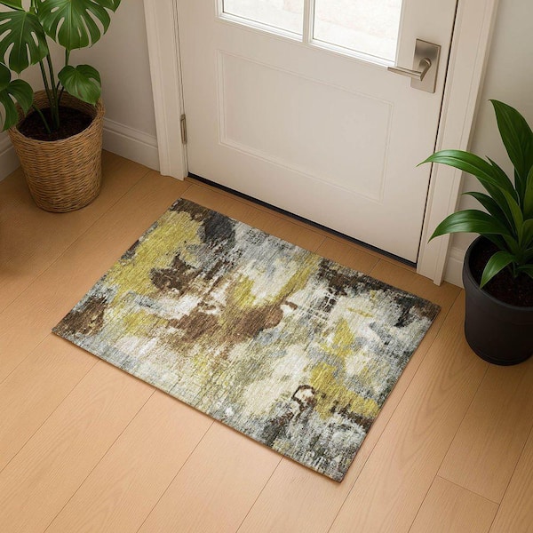 Mayfield Premium Machine Washable Abstract AMF1738 Brown 2 ft. x 3 ft. Area Rug