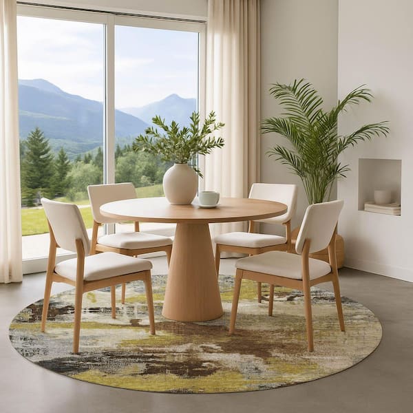 Mayfield Premium Machine Washable Abstract AMF1738 Brown 8 ft. x 8 ft. Round Rug
