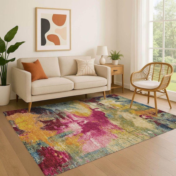 Mayfield Premium Machine Washable Abstract AMF1738 Garnet 9 ft. x 12 ft. Area Rug