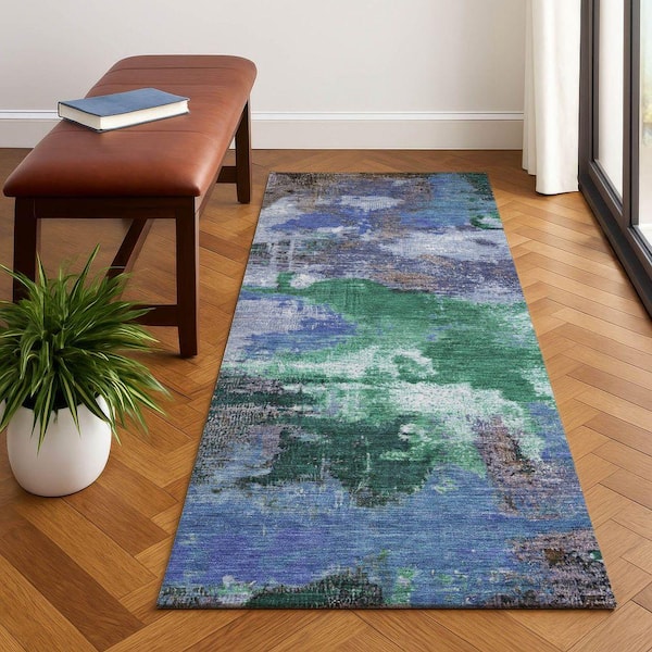 Mayfield Premium Machine Washable Abstract AMF1738 Green 2 ft. 3 in. x 7 ft. 6 in. Runner Rug