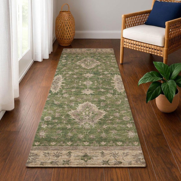 Mayfield Premium Machine Washable Abstract AMF1739 Aloe 2 ft. 3 in. x 7 ft. 6 in. Runner Rug