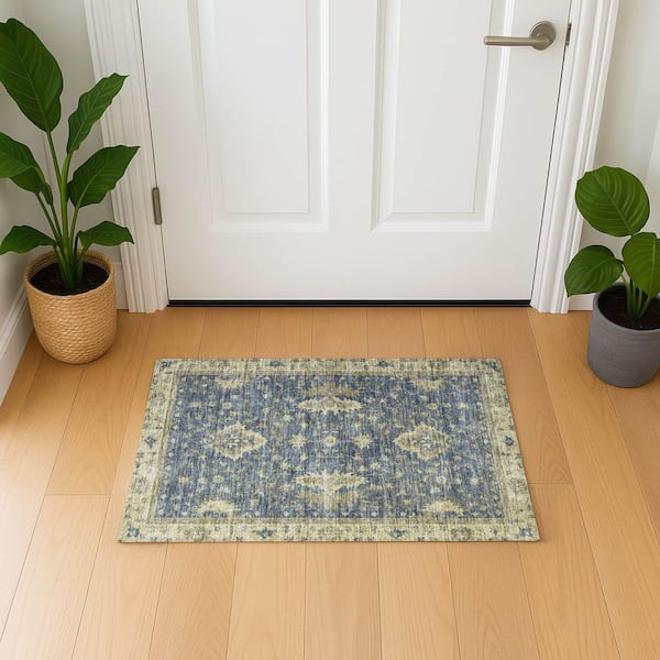 Mayfield Premium Machine Washable Abstract AMF1739 Blue 2 ft. x 3 ft. Area Rug