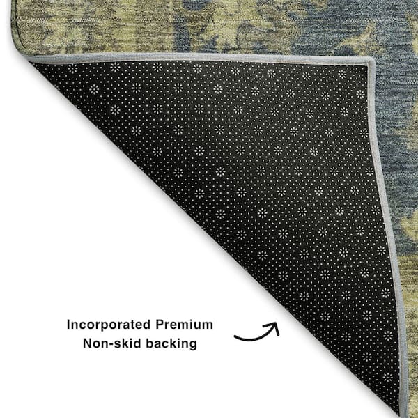 Mayfield Premium Machine Washable Abstract AMF1739 Blue 8 ft. x 8 ft. Round Rug